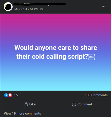 Iâve been making cold calls since I was 17. After a couple of hundred cold calls, I put together a nice script and have altered it over the years.
